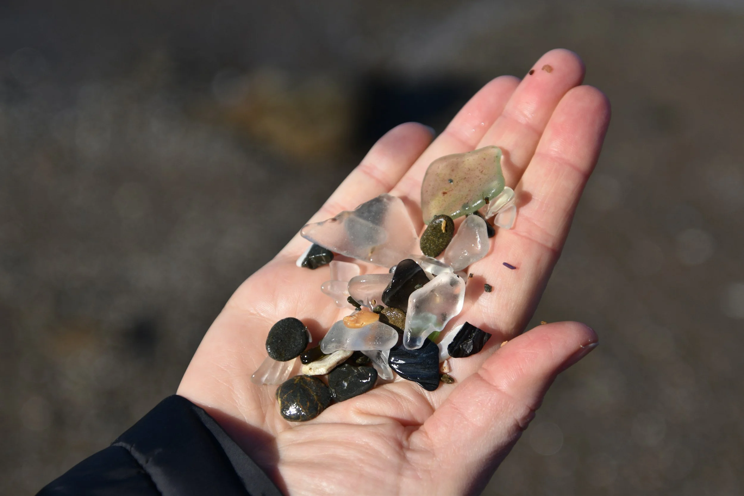 I don’t know if it’s my old eyes, being on the wrong beach at the wrong time, or plain bad luck, but I can never find those blue, green, brown, and white satiny nuggets my kids find by the pocketfuls.